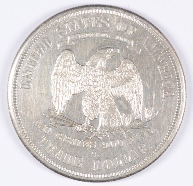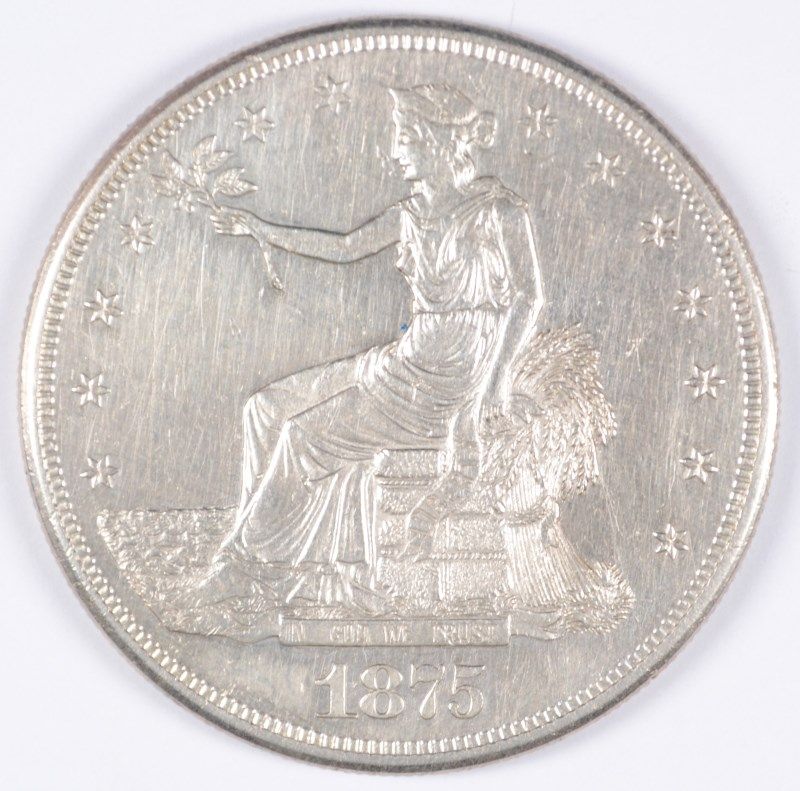 1875-S TRADE DOLLAR, MS-63 ( CLEANED ) WHITE, NICE LOOKING TYPE COIN!
