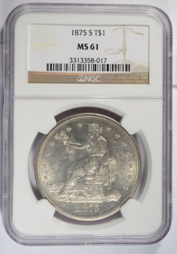 1875-S TRADE DOLLAR NGC MS61, LOOKS BETTER THAN MS61! WHITE!
