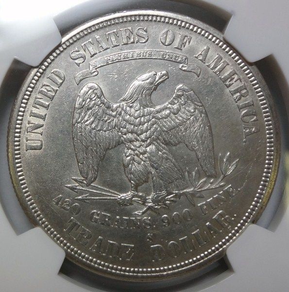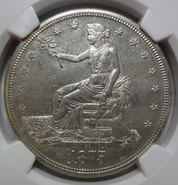 1875-S TRADE DOLLAR NGC UNC, CLEANED, NICE MS62 COIN LIGHTLY CLEANED