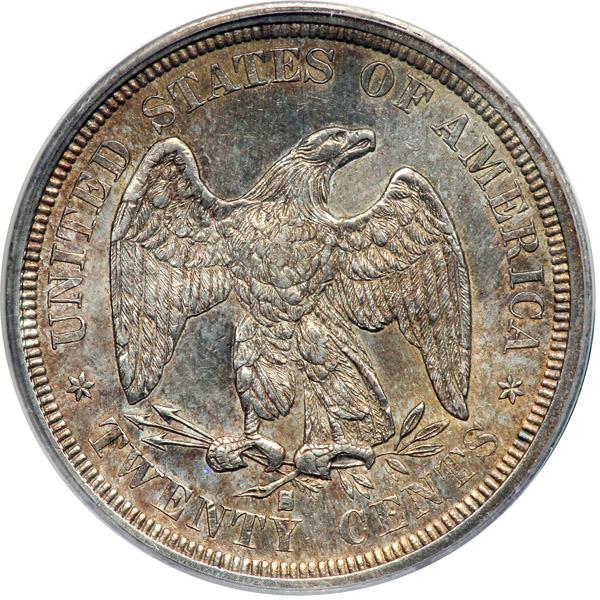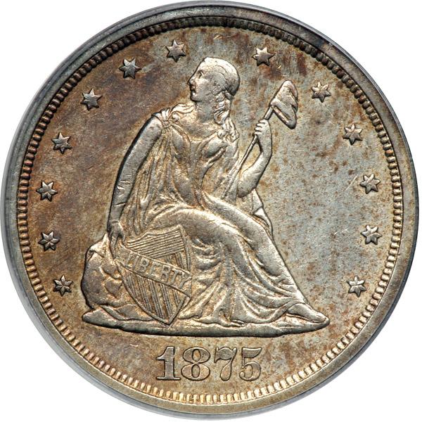 1875-S Twenty Cents. PCGS Genuine. Our grade is AU with some minor hairlines (PCGS # 5298) .