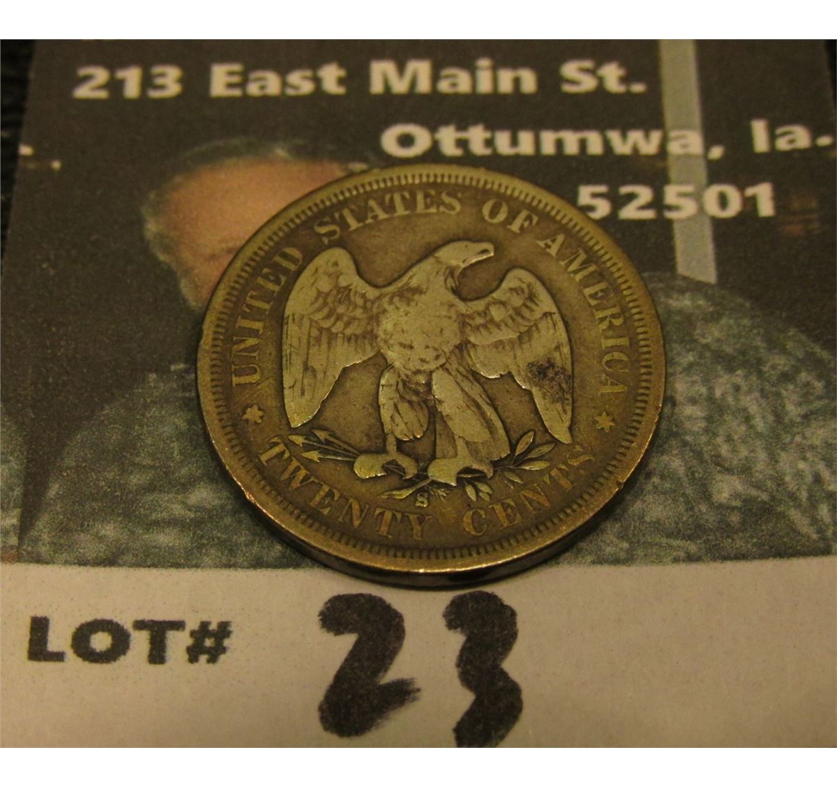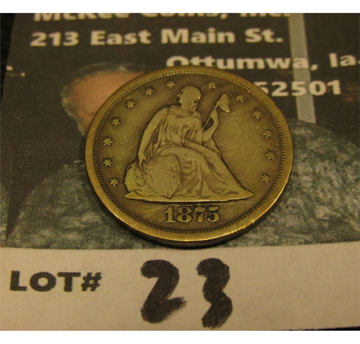 1875 S U.S. Twenty Cent Piece, VG, 2016 Red Book value $120.00.