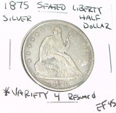 1875 SEATED LIBERTY HALF DOLLAR Variety 4 Resumed *EXTREMLY RARE EXTRA FINE-45 GRADE*!! Hard to find Half Dollar!! ***Coin, Currency & All Items Listed in this auction - Grades, Conditions and Values are not Safe Deposit Coins LLC Responsibilty. Grades, Condition and Values are determined by Consigner(s) & Buyers.