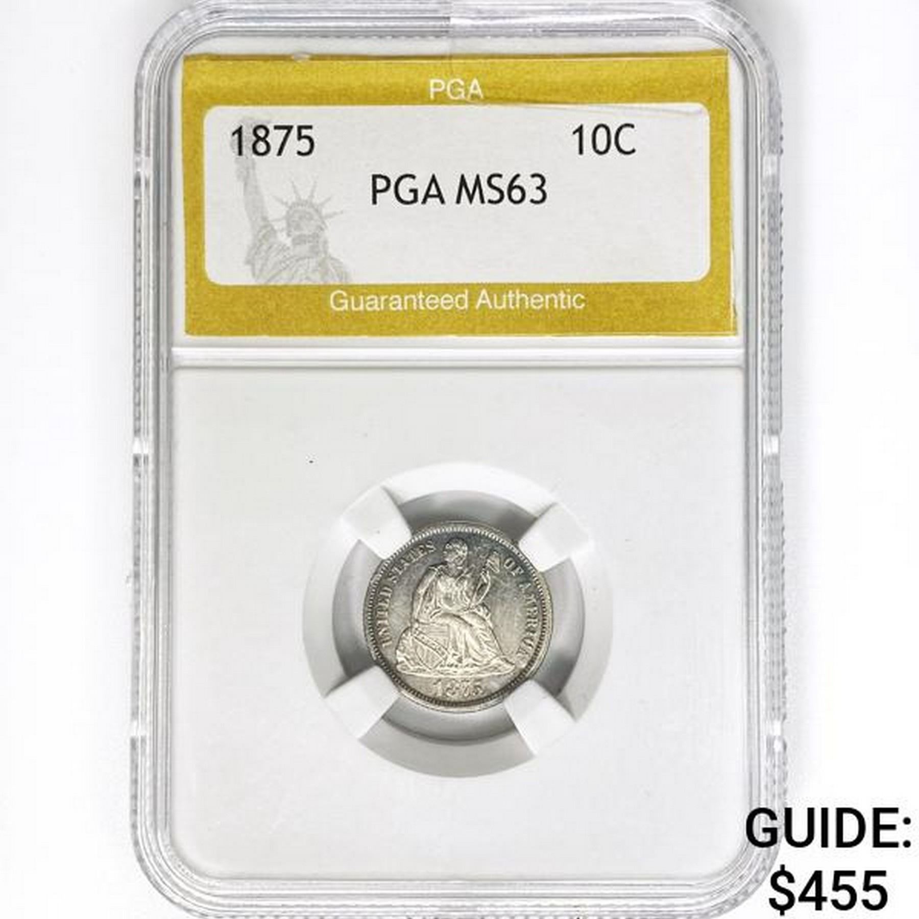 1875 Seated Liberty Dime PGA MS63
