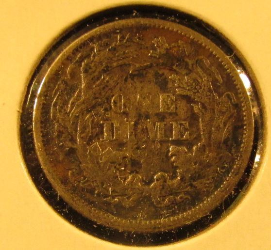 1875 Seated Liberty Dime, XF, value $35