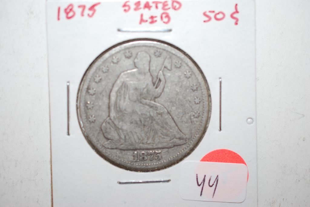 1875 Seated Liberty Half Dollar; EST. $30-40