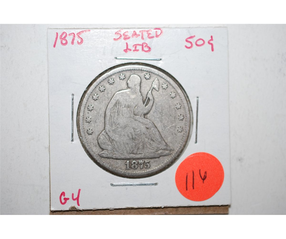 1875 Seated Liberty Half Dollar; G4; EST. $30-40
