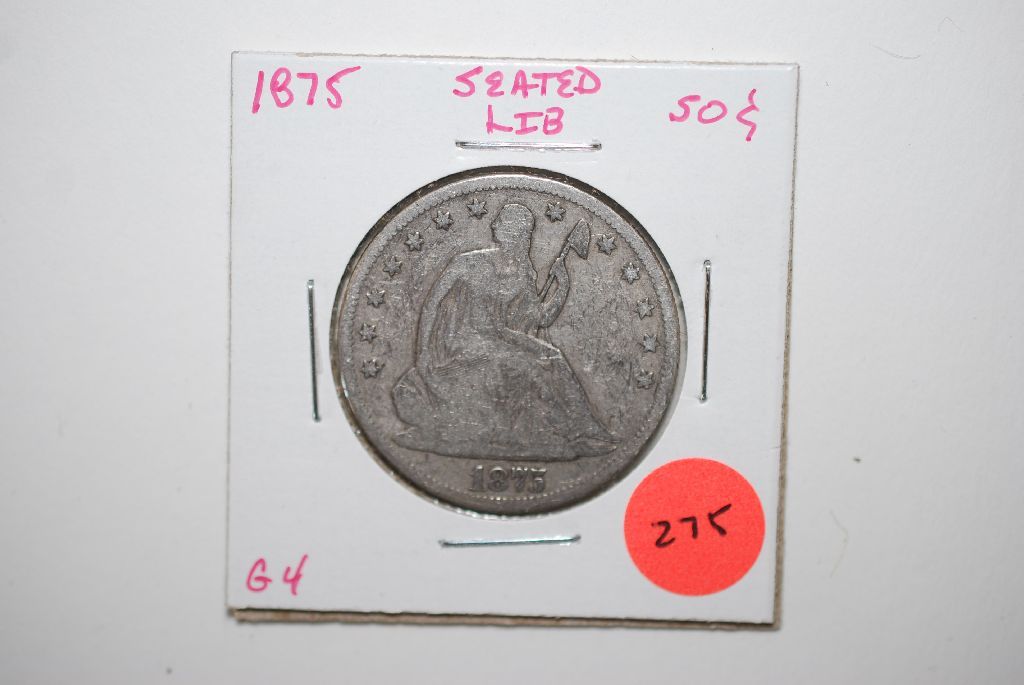 1875 Seated Liberty Half Dollar; G4; EST. $30-40