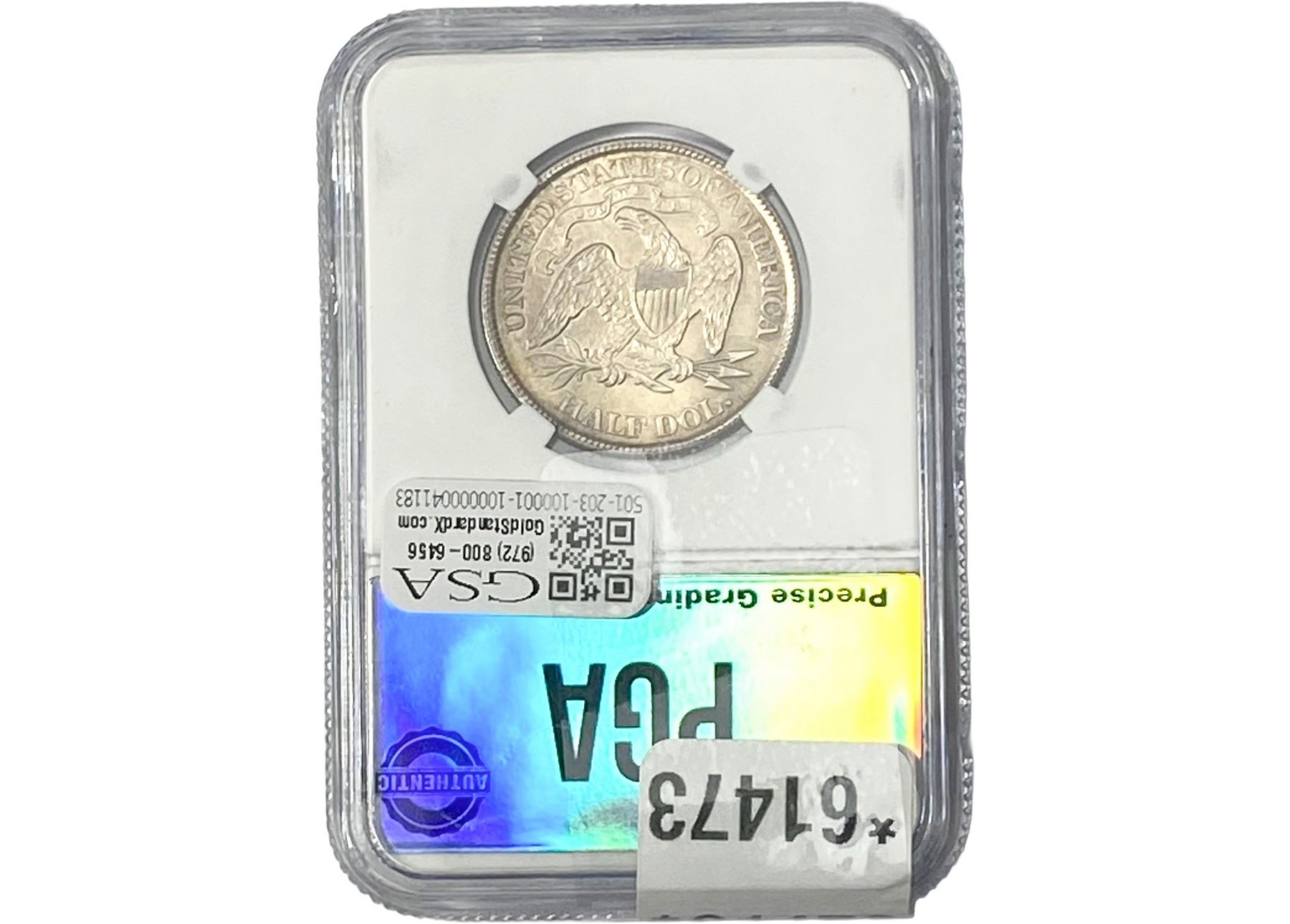 e. Coins sold referencing a third-party grading service are sold “AS IS” without any express or implied warranty, except for a guarantee by GSA that they are genuine. Removal or alteration of the holder, voids all of Bidder’s claims concerning that Product. Certain warranties may be available from the grading services and Bidders are referred to them for further details: Numismatic Guaranty Corporation (NGC), PO Box 4776, Sarasota, FL 34230, www.ngccoin.com/services/writtenguarantee.asp; Professional Coin Grading Services (PCGS), PO Box 9458, Newport Beach, CA 92658, www.pcgs.com/guarantee.html; ANACS, 6555 S. Kenton St., Ste. 303, Englewood, CO 80111; and Independent Coin Grading Co. (ICG), 7901 East Bellview, Ave., Suite 50, Englewood, CO 80111.
