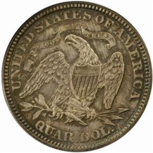 <style type="text/css"> body, td, th { font-family: Arial, Helvetica, sans-serif; font-size: 12px; color: #482424; margin: 0px; padding: 0px; } #header { background-image: url(http://www.bowersandmerena.com/ebay/images/template_v3_01.gif); clear: both; background-color: #590303; border-top-width: 2px; border-top-style: solid; border-top-color: #B38C4F;}#header #header_wrapper { height: 75px; clear: both; width: 800px; margin-right: auto; margin-left: auto; background-image: url(http://www.bowersandmerena.com/ebay/images/template_v3_03.gif); background-repeat: no-repeat; background-position: right; color: #F3EDCC;}#header #header_wrapper #header_logo { float: left; height: 75px; width: 444px; background-image: url(http://www.bowersandmerena.com/ebay/images/template_v3_02.gif); background-repeat: no-repeat; font-size: 10px; text-transform: capitalize; color: #B38C4F;}#header #header_wrapper #header_right { float: left; height: 75px; width: 356px; text-align: right;}#header #header_wrapper #header_right #headerLoginBtn { margin-bottom: 30px;}#header #header_wrapper #header_right input#txtSearch { color: #B49056; border: 1px solid #B49056; width: 175px; padding-top: 3px; padding-right: 3px; padding-bottom: 4px; padding-left: 3px;}#nav { height: 37px; background-image: url(http://www.bowersandmerena.com/ebay/images/template_v3_05.gif); clear: both;}#nav #nav_wrapper { height: 35px; width: 800px; margin-right: auto; margin-left: auto; border-left-width: 1px; border-left-style: solid; border-left-color: #B38C4F;}#nav #nav_wrapper a { padding-right: 15px; padding-left: 15px; border-right-width: 1px; border-right-style: solid; border-right-color: #B38C4F; height: 25px; padding-top: 10px; display: block; float: left; text-decoration: none; font-weight: bold; color: #5D0303;}#nav #nav_wrapper a:hover { color: #B38C4F;}#nav #nav_wrapper #search { float: right; padding-top: 7px;}#nav #nav_wrapper #search #txtSearch { font-family: Arial, Helvetica, sans-serif; font-size: 10px; text-transform: uppercase; color: #D2AE75; border: 1px solid #B38C4F; padding: 3px;}#content_bgd { background-image: url(http://www.bowersandmerena.com/ebay/images/template_v3_09.gif); background-repeat: repeat-y; background-position: center; padding-top: 15px; padding-bottom: 15px; background-color: #FBFBDB;}#content_wrapper { clear: both; height: auto; width: 800px; margin-right: auto; margin-left: auto;}.LotDetailWhite{ line-height:normal; font-size:13px; font-family: arial,helvetica,sans-serif; color: White; font-weight: bold;}.LotDetailInformation{ line-height:normal; font-size: 13px; font-family: arial,helvetica,sans-serif;}.LotDetailMessage{ line-height:normal; font-size: 13px; font-family: arial,helvetica,sans-serif; color: red;}}tr.HeaderAuctionTitle td { color: #000000; font-weight: bold; padding: 2px; background-image: url(http://www.bowersandmerena.com/ebay/images/template_v3_05.gif); background-repeat: repeat-x; border-bottom-width: 1px; border-bottom-style: solid; border-bottom-color: #B38C4F;}table.AuctionSummary a, table.AuctionSummary a:link, table.AuctionSummary a:visited { color: #0000FF; text-decoration: none;}}td.tableHeaderLeft { border-left-width: 1px; border-left-style: solid; border-left-color: #B38C4F;}td.tableHeaderRight { border-right-width: 1px; border-right-style: solid; border-right-color: #B38C4F;}td.tableCellMiddle { border-left-width: 1px; border-left-style: solid; border-left-color: #B38C4F; border-right-width: 1px; border-right-style: solid; border-right-color: #B38C4F; padding: 5px;}tr.footer td { border-top-width: 1px; border-top-style: solid; border-top-color: #B38C4F;}</style></head><body><div id="header"> <div id="header_wrapper"> <div id="header_logo"> </div> <div id="header_right"> </div> </div></div><div id="nav"> <div id="nav_wrapper"> <a href="http://www.bowersandmerena.com">Our eBayLive Auctions</a> <a href="#PaymentInfo">Payment Information</a> <a href="#ShippingInfo">Shipping Information</a> <a href="#About">About Bowers and Merena</a> </div></div><div id="content_bgd"> <div id="content_wrapper"> <table width="100%" border="0" cellpadding="5" cellspacing="0" class="AuctionSummary"> <tbody> <tr class="HeaderAuctionTitle" style="height: 25px;"> <td align="left" class="tableHeaderLeft" > </td> <td align="center" class="tableHeaderRight"> <span style="font-size: large;">Lot #512. 1875 Seated Liberty Quarter. MS-65 (PCGS).</span> </td> </tr> <tr> <td colspan="3" class="tableCellMiddle"> Smooth, sharply impressed features are veiled in blended antique-copper and blue-gray patination. Direct angles, however, call forth more vivid shades of powder-blue and lavender-silver that are most impressive around the reverse periphery and throughout the obverse. A particularly desirable Motto Seated Quarter for Gem type purposes.