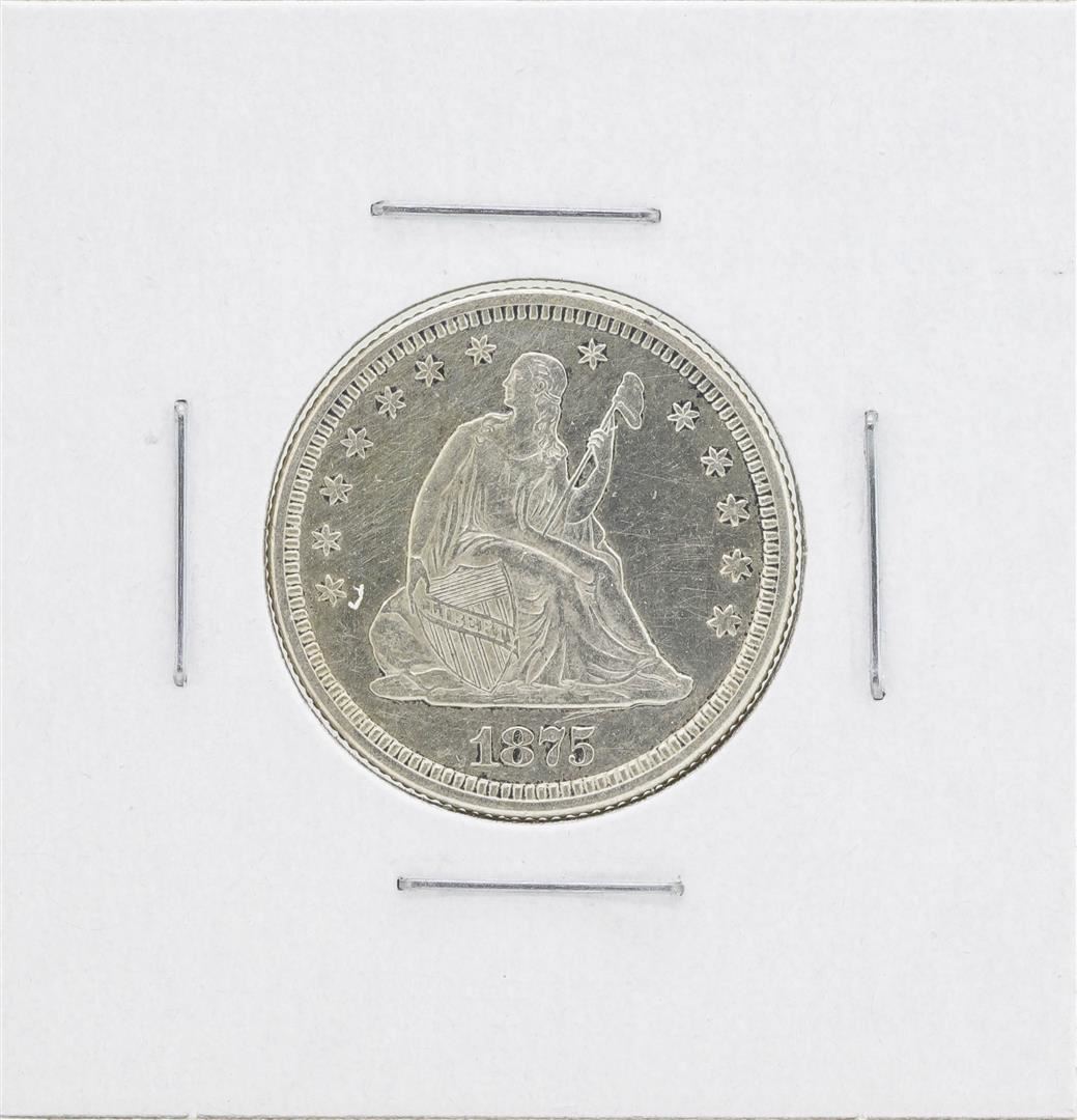 One 1875 Seated Liberty Quarter Silver Coin.