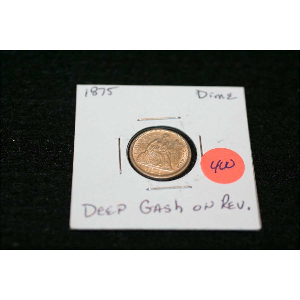 1875 Seated Liberty dime, deep gash on rev.