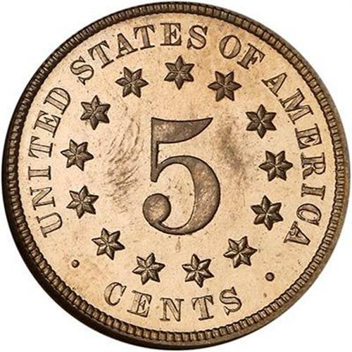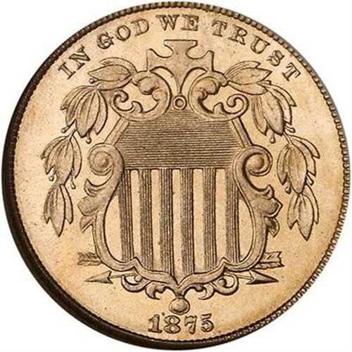A lustrous Gem that has flashy luster and rich sheen to the nickel-gray fields and devices. These three-cent "nickels" are actually composed of 75% copper. But the 25% nickel content dominates the color, providing strength to the alloy but also causing the mint a lot of trouble keeping the dies from cracking. The 1875 issue tends to be sleek but not overly "watery" when found in Proof (which isn't all that often). (#3829)