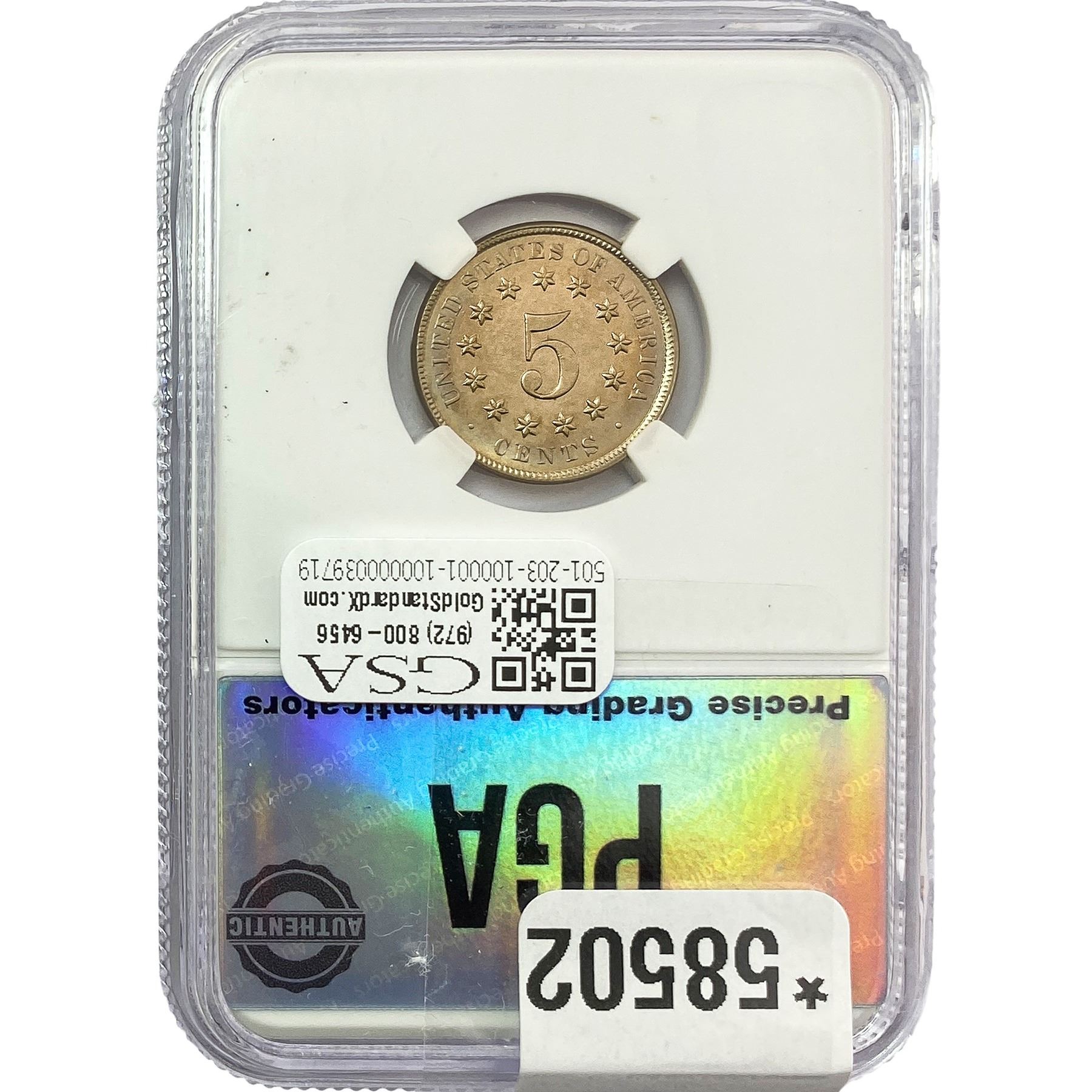 e. Coins sold referencing a third-party grading service are sold “AS IS” without any express or implied warranty, except for a guarantee by GSA that they are genuine. Removal or alteration of the holder, voids all of Bidder’s claims concerning that Product. Certain warranties may be available from the grading services and Bidders are referred to them for further details: Numismatic Guaranty Corporation (NGC), PO Box 4776, Sarasota, FL 34230, www.ngccoin.com/services/writtenguarantee.asp; Professional Coin Grading Services (PCGS), PO Box 9458, Newport Beach, CA 92658, www.pcgs.com/guarantee.html; ANACS, 6555 S. Kenton St., Ste. 303, Englewood, CO 80111; and Independent Coin Grading Co. (ICG), 7901 East Bellview, Ave., Suite 50, Englewood, CO 80111.