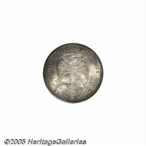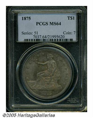 1875 T$1 MS64 PCGS. Type Two Reverse, with no ber