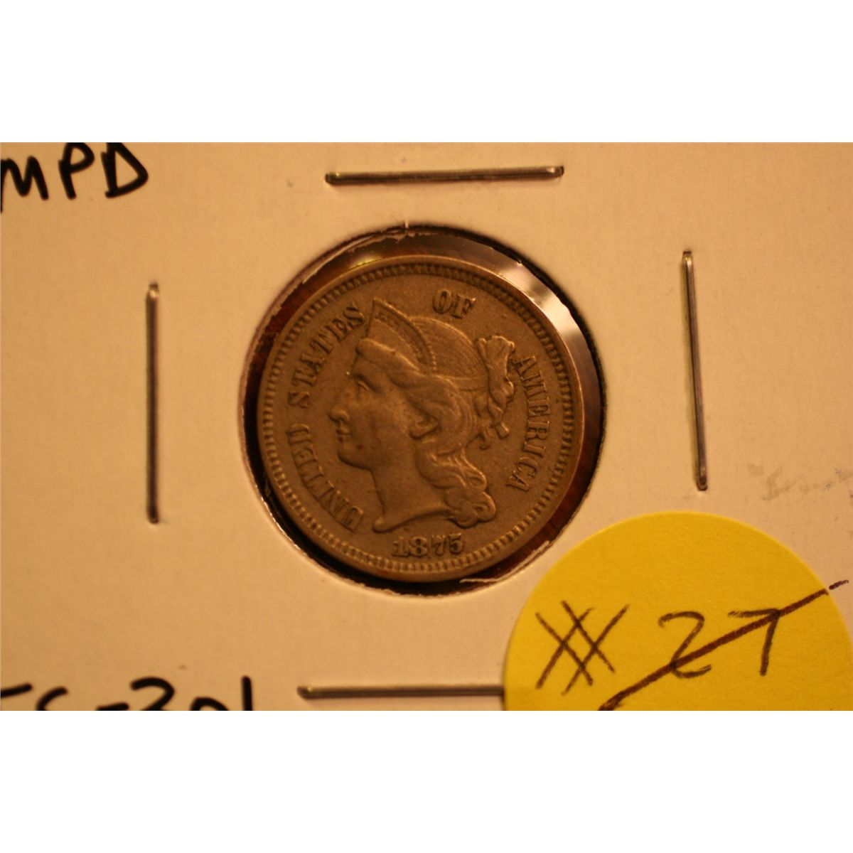 1875 Three Cent (VF-XF 1 In Throat Variety)