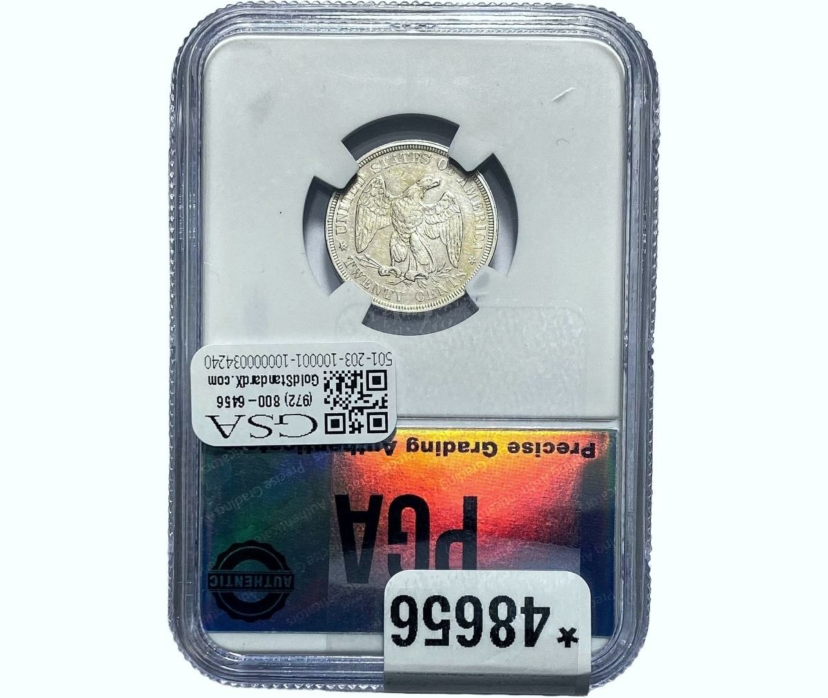 COINS AND CURRENCY LISTED IN GSA’S CATALOG AS GRADED AND ENCAPSULATED BY PCGS, NGC, ANACS, ICG, PCGS CURRENCY, PMG, PCGS BANKNOTE GRADING, CMC OR ANY OTHER THIRD-PARTY GRADING SERVICE ARE LIKEWISE SOLD “AS-IS” EXCEPT AS EXPRESSLY SET FORTH HEREIN. ALL THIRD-PARTY GRADING SERVICE GUARANTEES, INCLUDING AUTHENTICITY, ARE THE SOLE RESPONSIBILITY OF THE THIRD-PARTY GRADING SERVICE AND NOT WARRANTIES OR GUARANTEES OF GSA. BIDDERS SHOULD CONTACT THESE THIRD-PARTY GRADING SERVICES DIRECTLY WITH RESPECT TO ANY CLAIMS OR QUESTIONS THEY MAY HAVE CONCERNING THEIR GUARANTEES AND WARRANTIES. BIDDERS ACKNOWLEDGE AND AGREE THAT AUCTIONEER IS NOT BOUND BY OR LIABLE FOR ANY OPINION OR CERTIFICATION BY ANY THIRD-PARTY GRADING SERVICE. REMOVAL OF A PRODUCT FROM ITS PROTECTIVE CASING OR HOLDER OR ALTERATION OF ANY COIN HOLDER WAIVES ALL RIGHTS CONCERNING THE PRODUCT CONTAINED THEREIN.