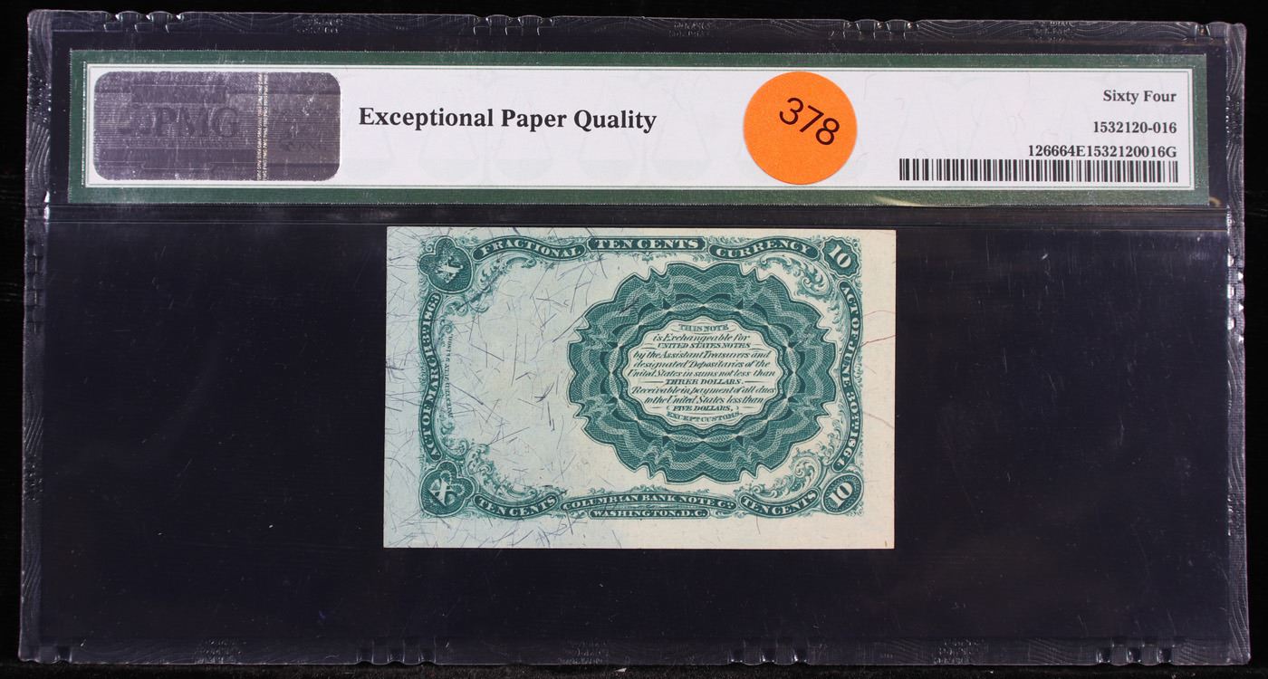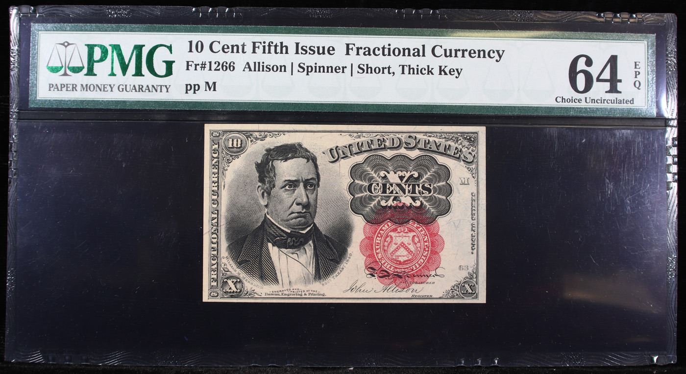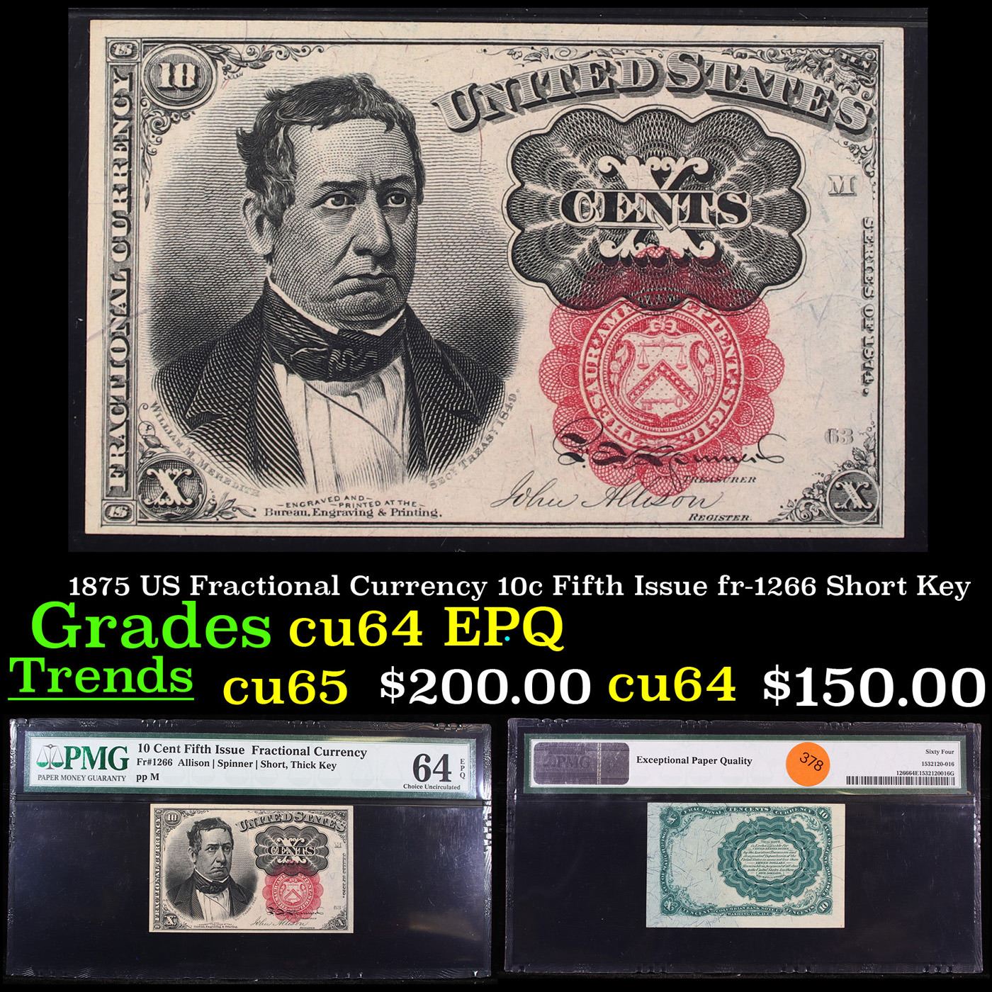 1875 US Fractional Currency 10c Fifth Issue fr-1266 Short Key Graded cu64 EPQ By PMG.