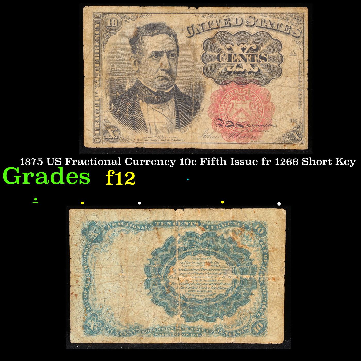 1875 US Fractional Currency 10c Fifth Issue fr-1266 Short Key Grades f, fine