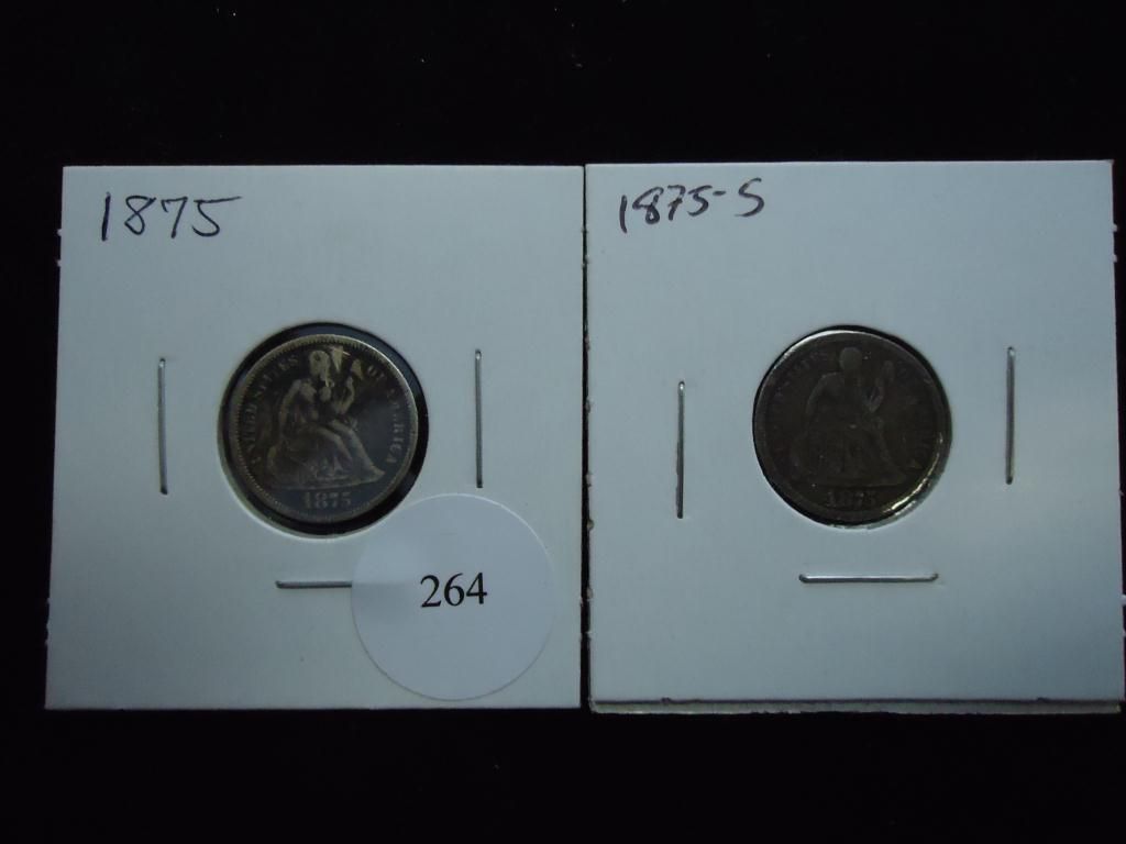 1875 VF & 1875-S FINE SEATED LIBERTY DIMES
