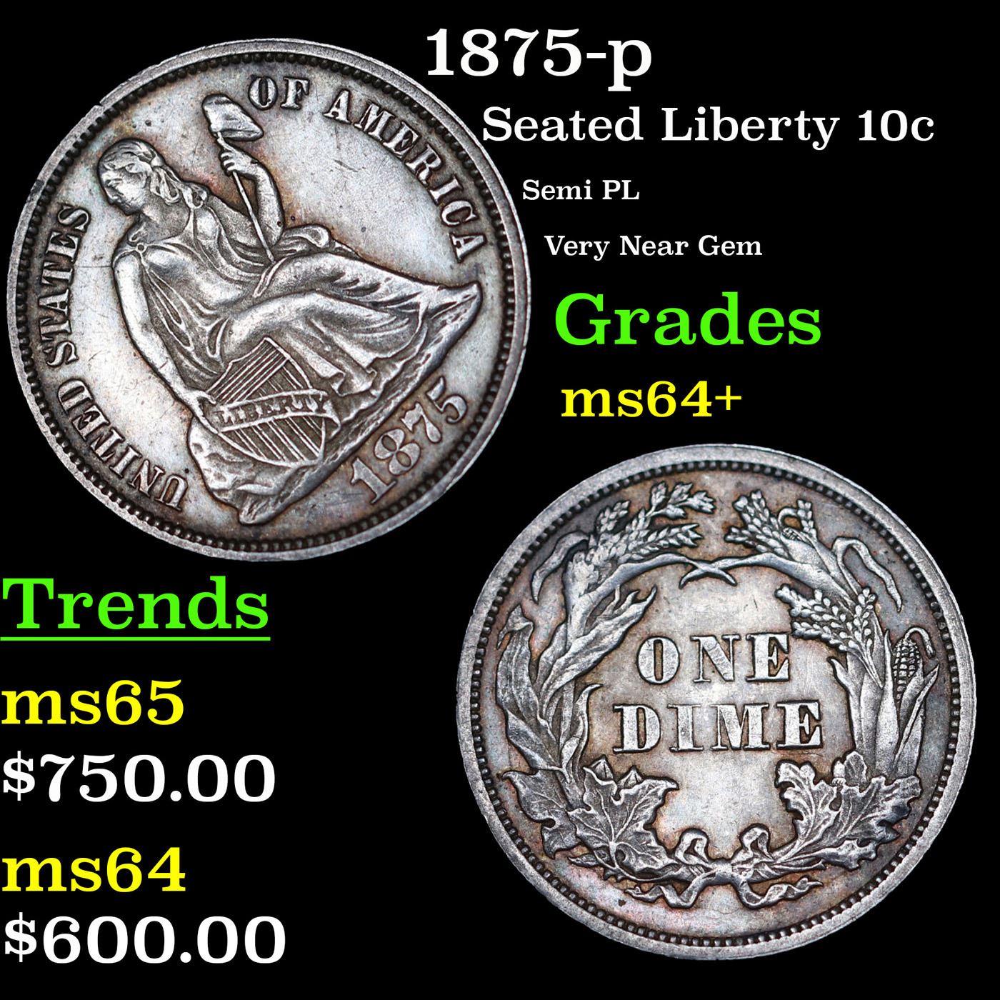 1875-p Seated Liberty Dime 10c Grades Choice+ Unc.