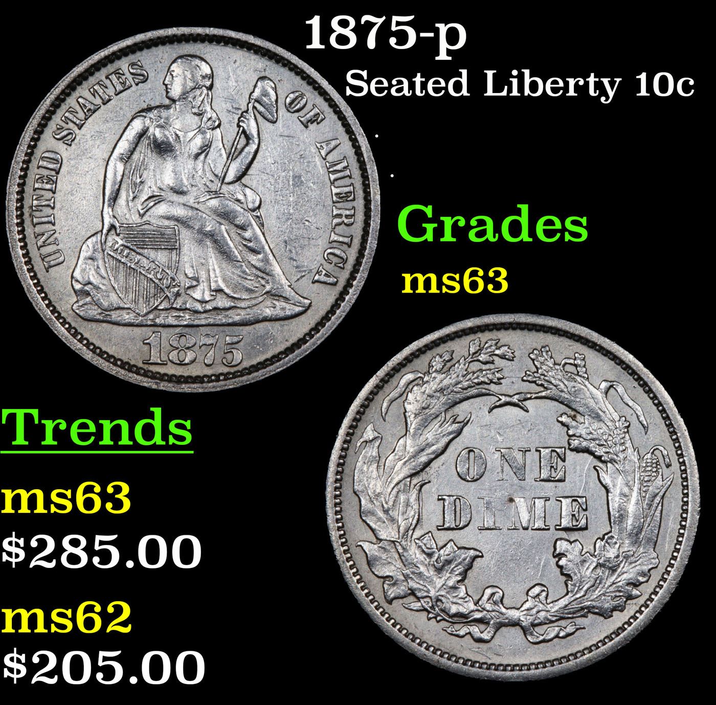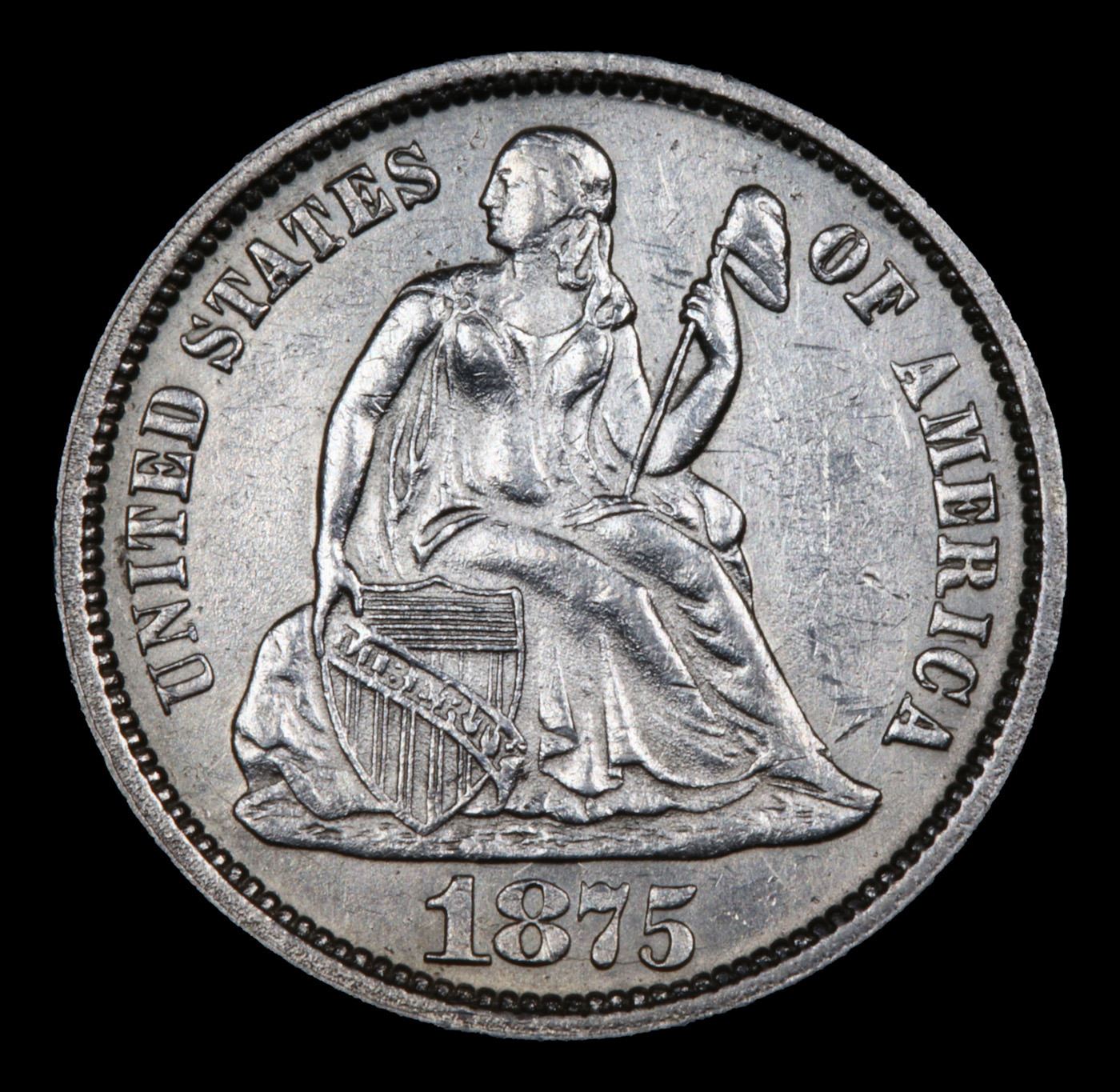 1875-p Seated Liberty Dime 10c Grades Select Unc.
