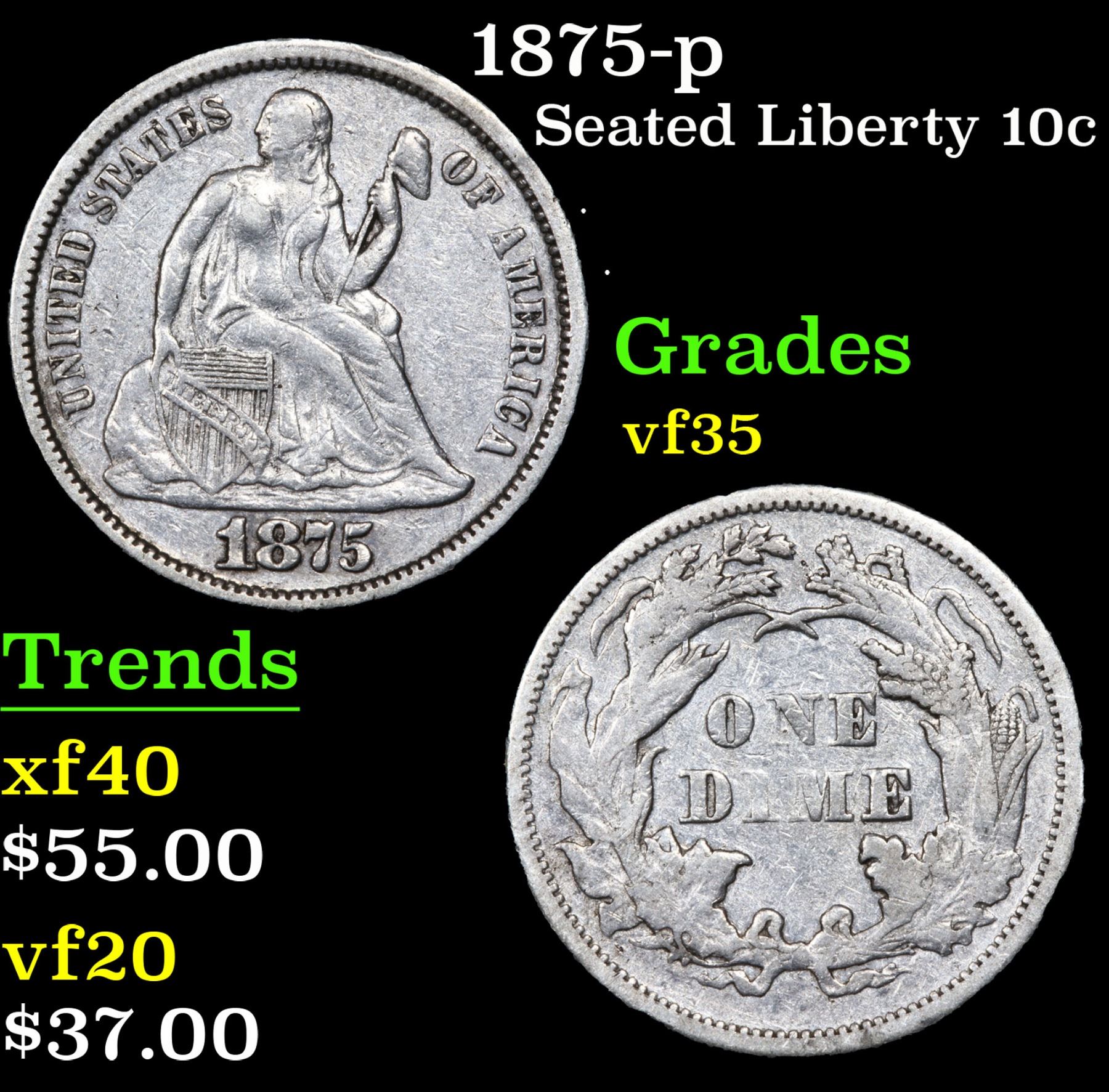 1875-p . . Seated Liberty Dime 10c Grades vf++.
