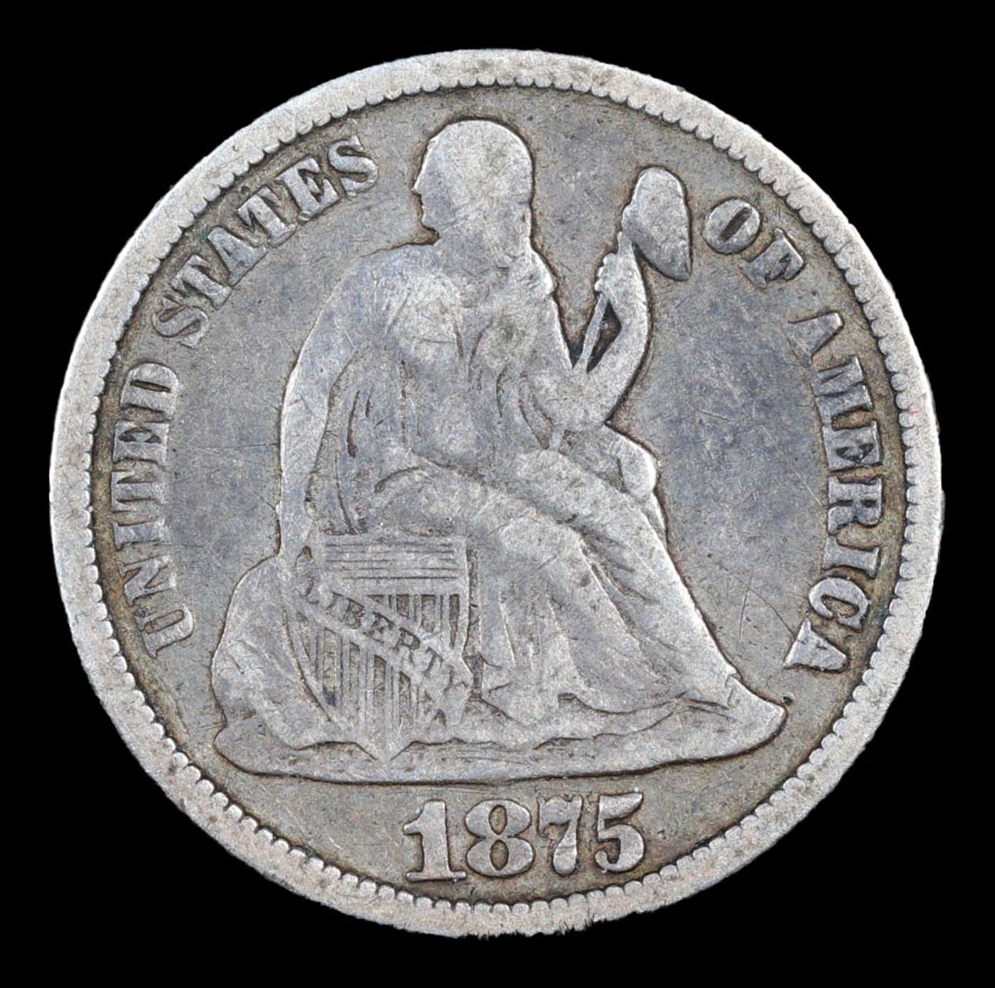 1875-p Seated Liberty Dime 10c Grades vf++.