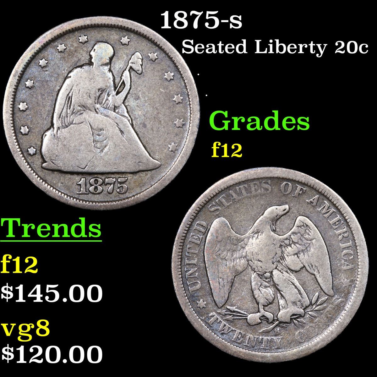1875-s . . Twenty Cent Piece 20c Grades f, fine.