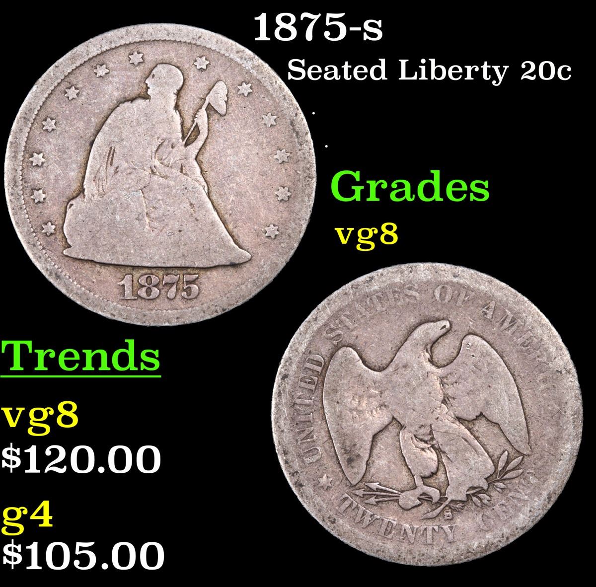 1875-s Twenty Cent Piece 20c Grades vg, very good.
