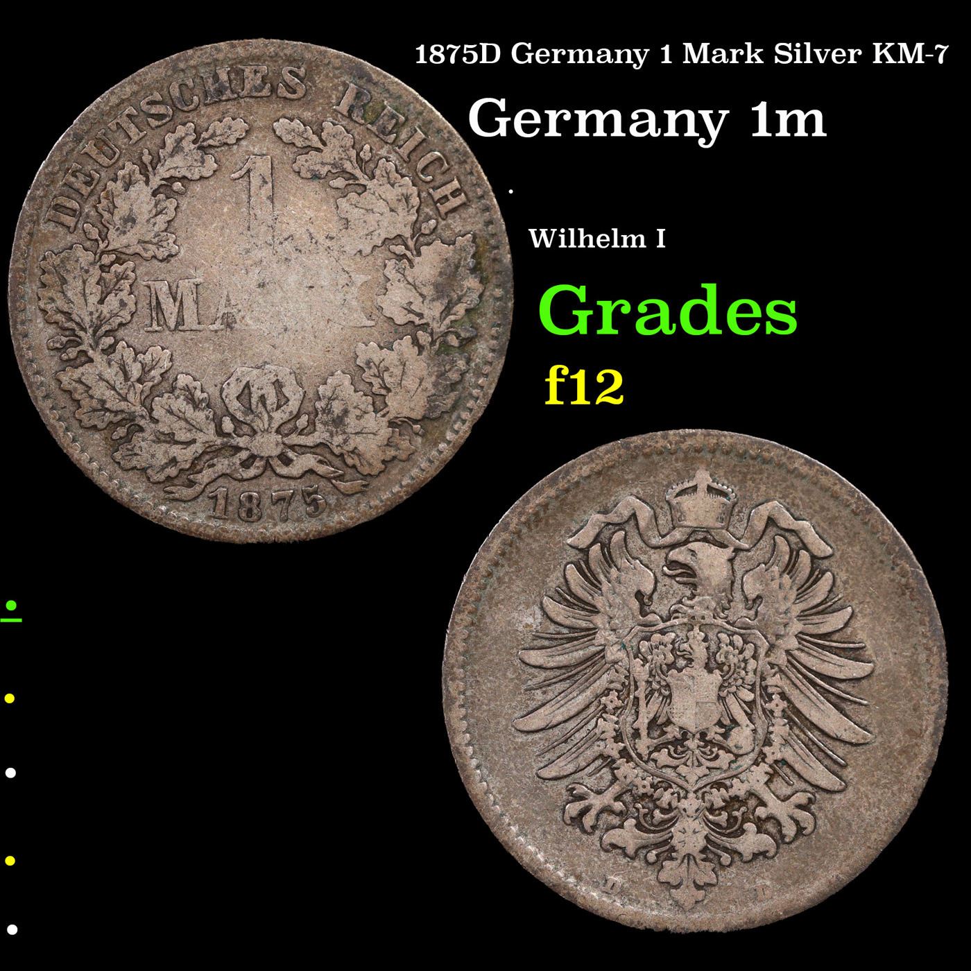 1875D Germany 1 Mark Silver KM-7 Grades f, fine