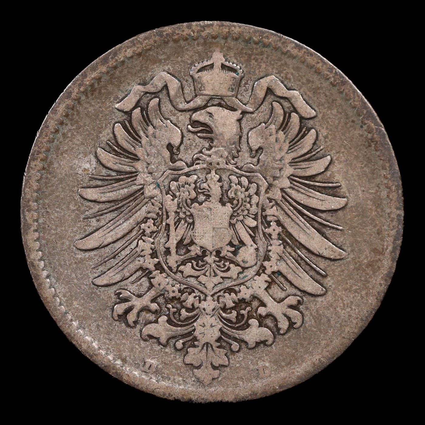 1875D Germany 1 Mark Silver KM-7 Grades f, fine.