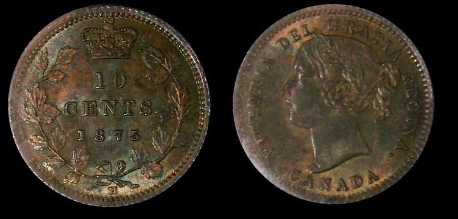 1875H 10¢ ICCS MS63. Lovely toning with lots of underlying lustre. Top 5 by ICCS standard and crossed by PCGS. Rare.