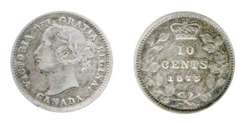 1875H 10¢ ICCS VF20, lightly cleaned, toning back