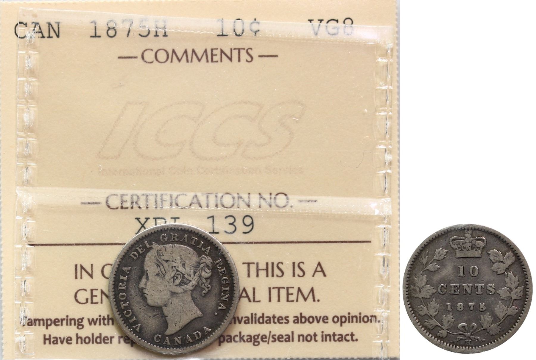 1875H 10¢ ICCS Very Good-8 Problem free example. Key date.