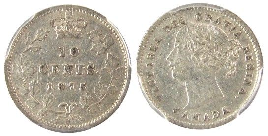1875H 10¢ PCGS XF45. Clean problem free Key date issue. Lustrous.