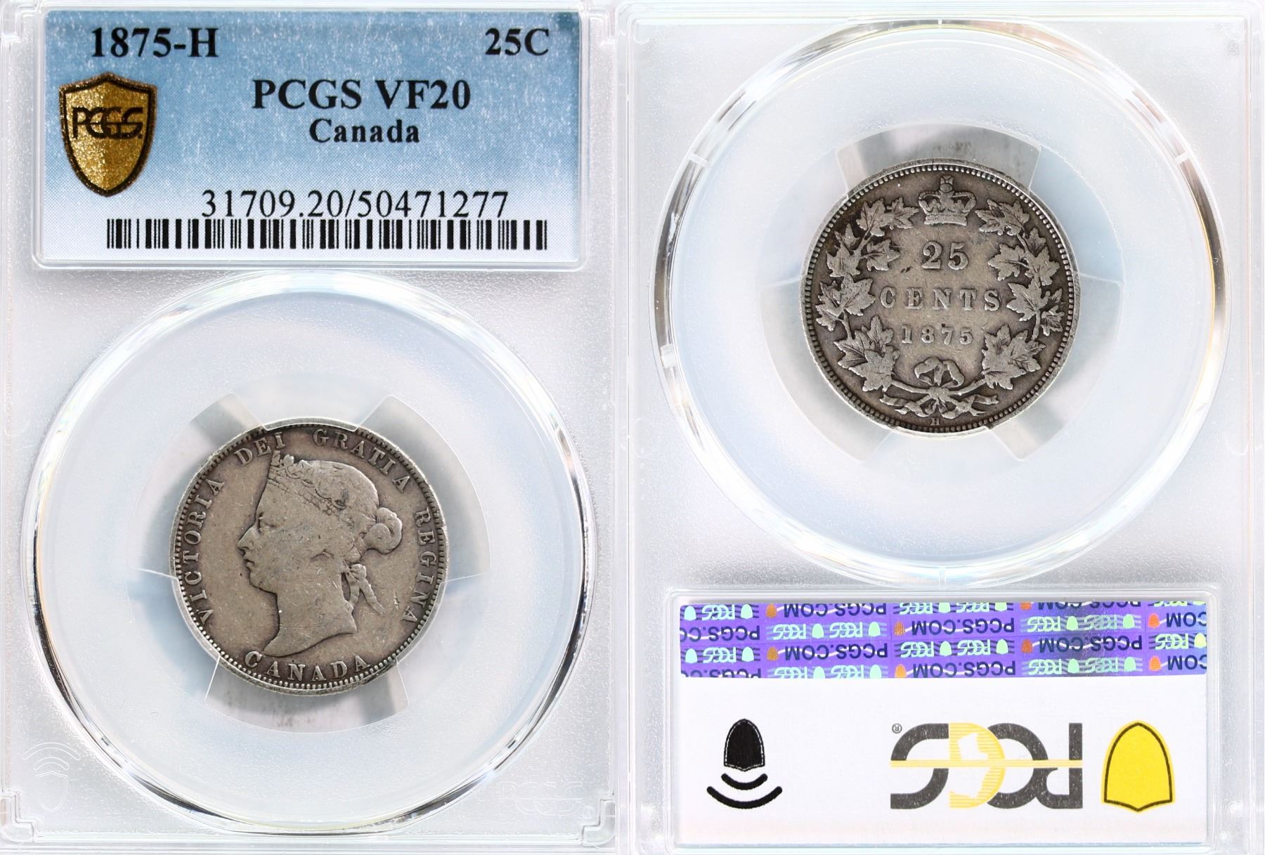 1875H 25¢ "Pointed 5" PCGS Very Fine-20 - Rare key date.