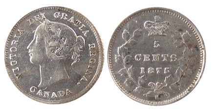 1875H 5¢ ICCS VF-20 SMALL DATE RARE.