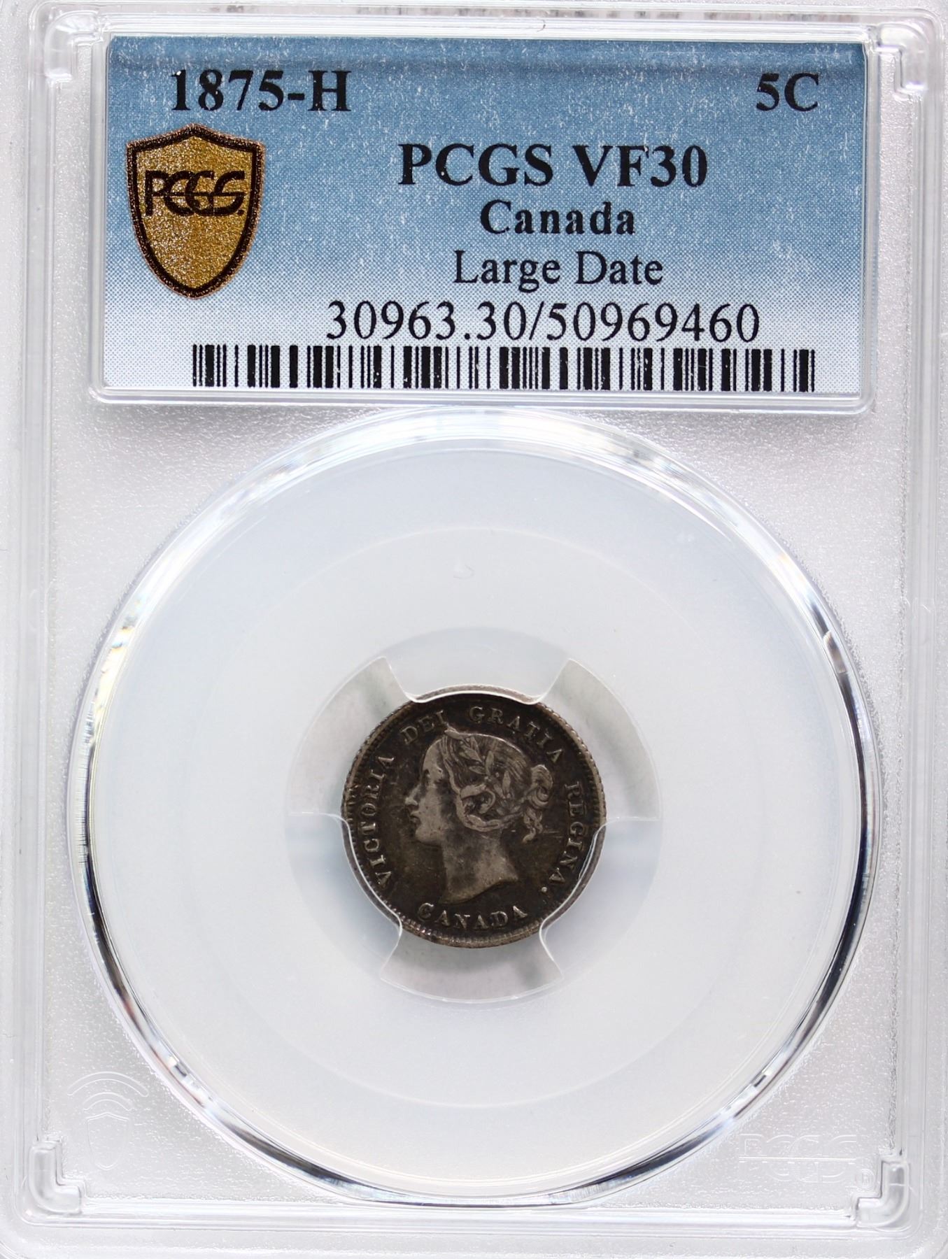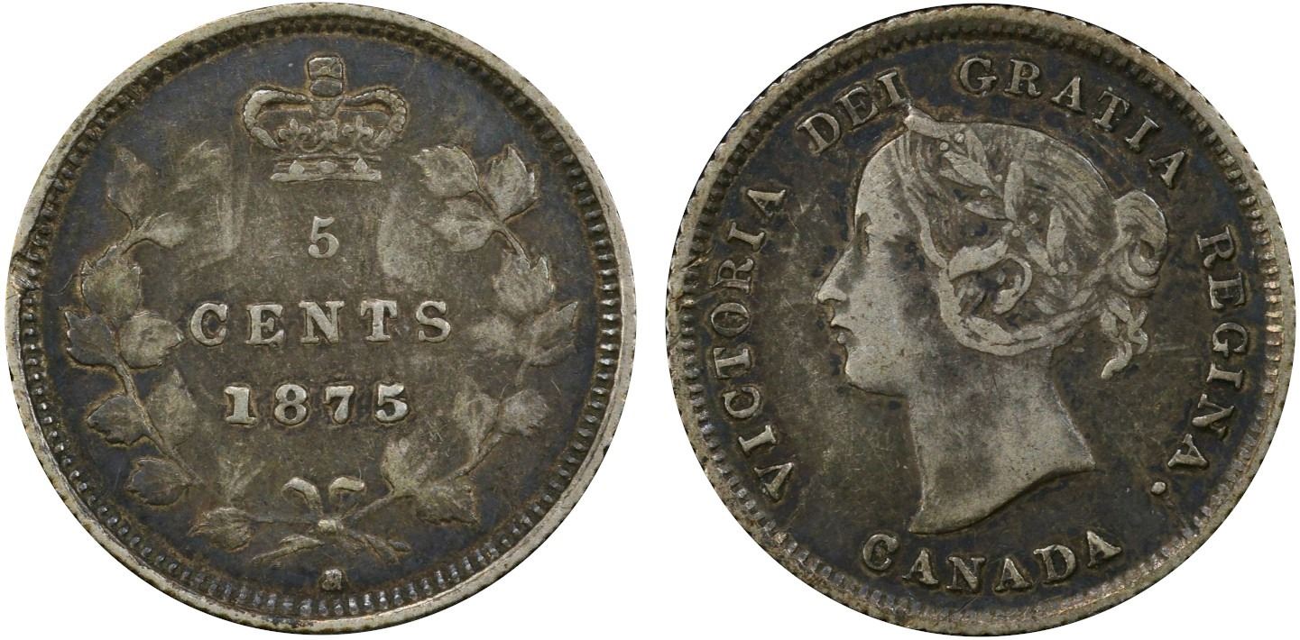 1875H 5¢ "Large Date" PCGS Choice Very Fine-30. Rare and sought after variety.