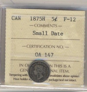 1875H 5¢ Sml Date ICCS F12. Problem free.