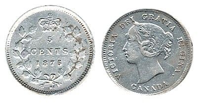 1875H 5¢ Sml Dt ICCS VF20. Key issue.