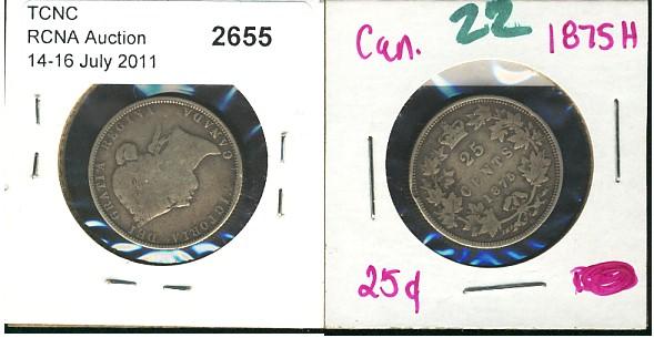 1875H Blunt 5 25¢ G-4 perhaps better. A nice example.