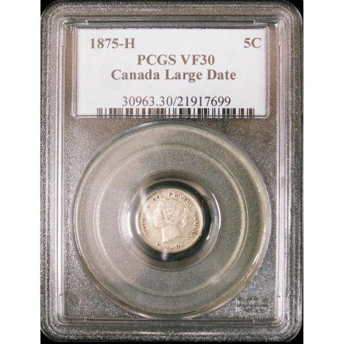 1875H Large date 5¢ PCGS VF30. Origial silver gray tone. Rare and underrated date.