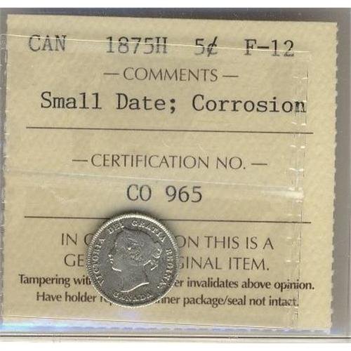 1875H SD 5¢ ICCS F12, Designated w/corrosion.