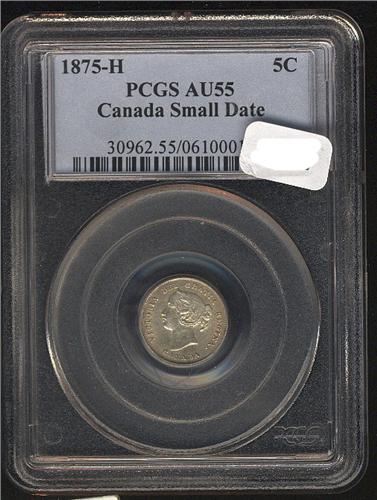 1875H Small date ICCS AU-55, brilliant. Key date.