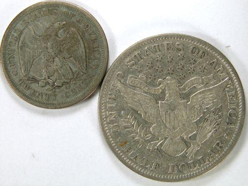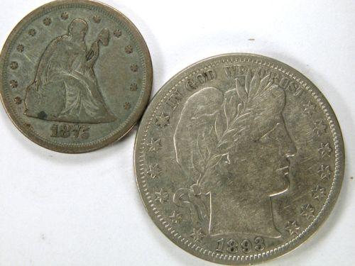 20 Cents 1875S, VF+ and Half Dollar 1893 Fine. Two lightly toned pieces