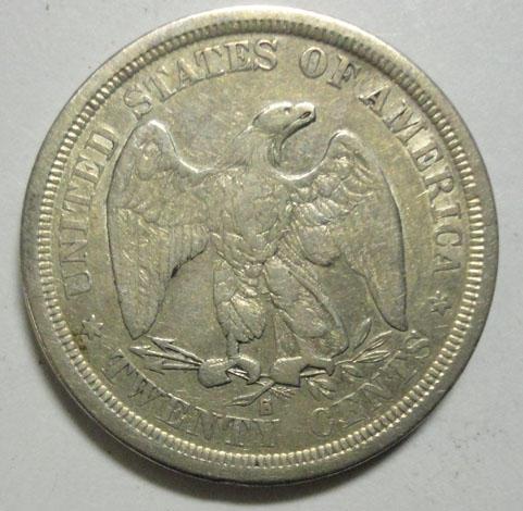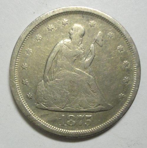 1875S twenty center F/VF. Typical XF reverse weak Liberty but VF strike obverse