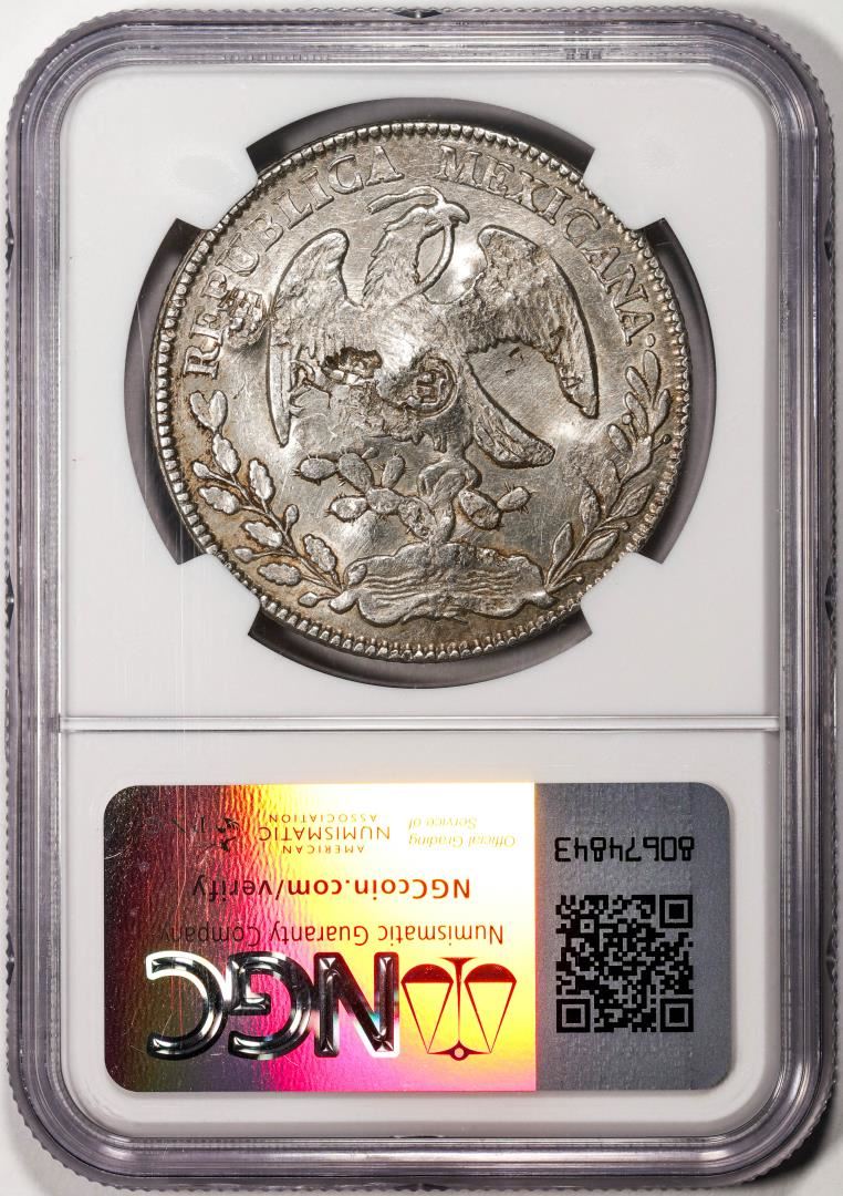 One 1875ZS JA Mexico 8 Reales Silver Coin NGC Chopmarked. NGC Certified.