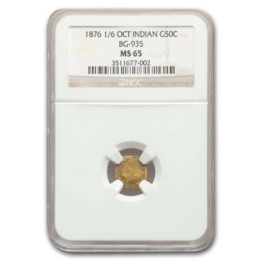 1876 1/6 Indian Octagonal 50 Cent Gold MS-65 NGC (BG-935)