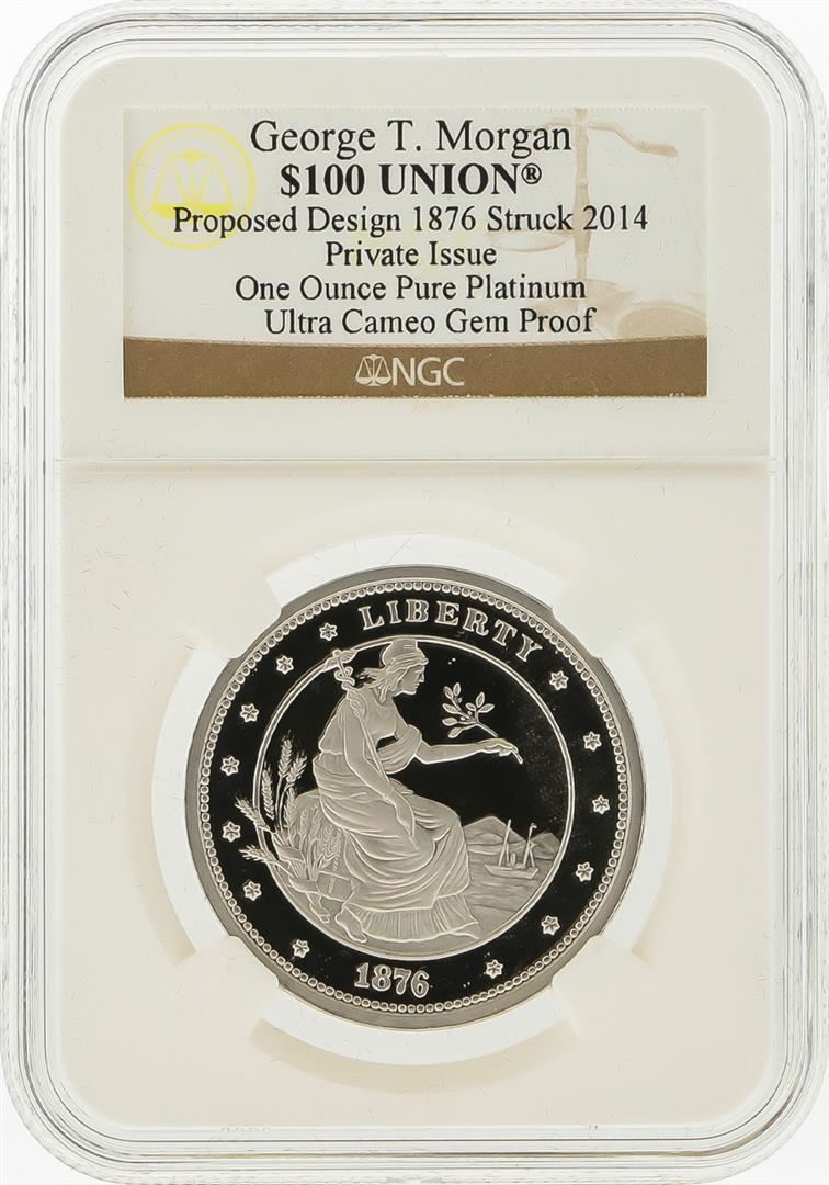 One 1876 $100 George T. Morgan Platinum Coin NGC Ultra Cameo Gem Proof. NGC Certified.