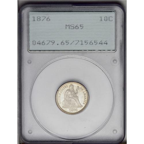 1876 10C MS65 PCGS. Type One Reverse. Booming luster a 1876[10C] MS65 PCGS.